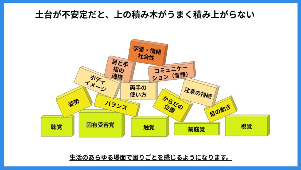 感覚統合がスムーズでない場合、以下のようなことが起こります: