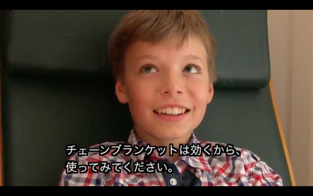 発達支援センターでの事例 「ADHD傾向のある児童で、寝かしつけに1時間以上かかっていたが、チェーンブランケットを使ってから10~15分で寝られるようになった。普通の布団だとゴロゴロと動き回ってしまうが、チェーンブランケットなら、落ち着いてそこに居てくれる」