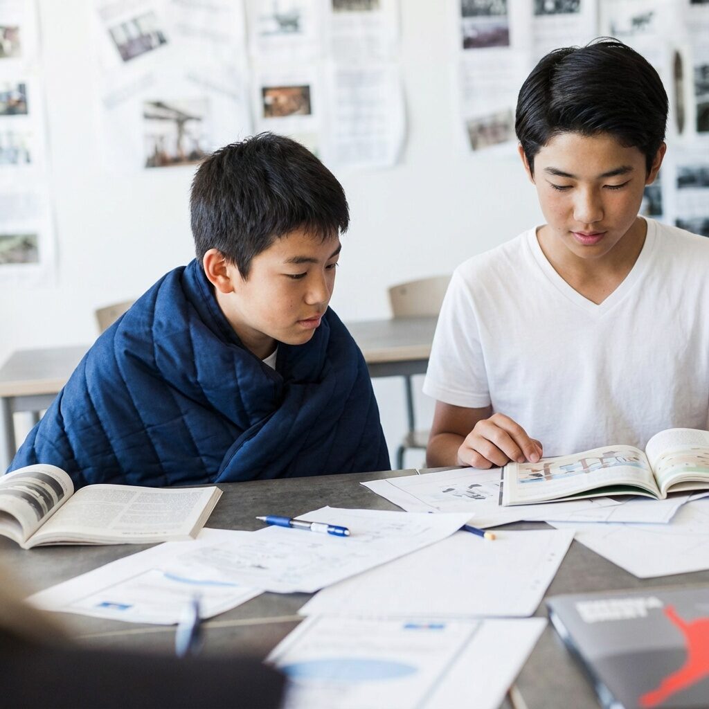 教室でもカームダウンに使用されているチェーンブランケット・デイ
